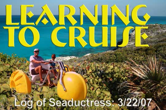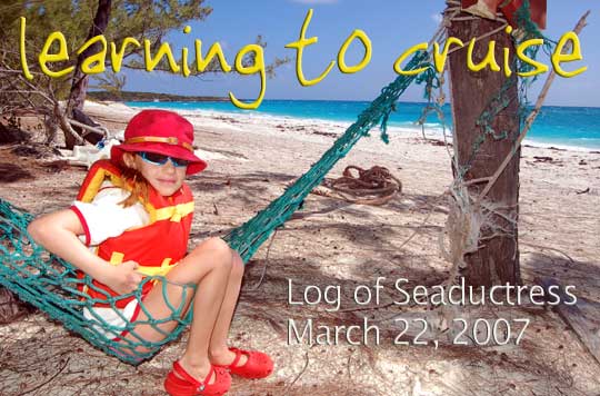 This is Laura on the ocean side of Shroud Cay. It's been so windy that Laura sometimes wears her life jacket even on shore.