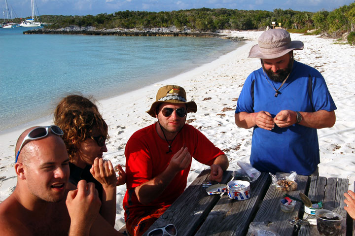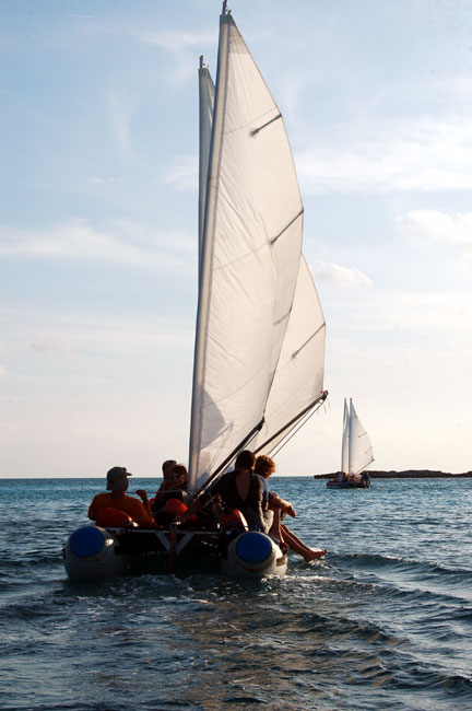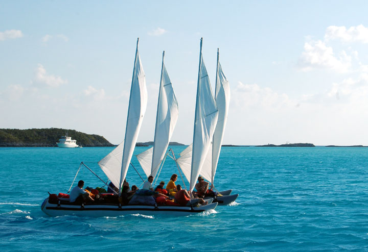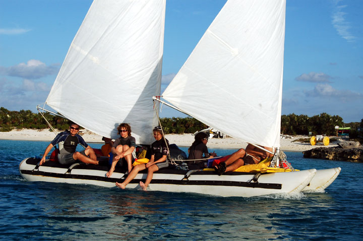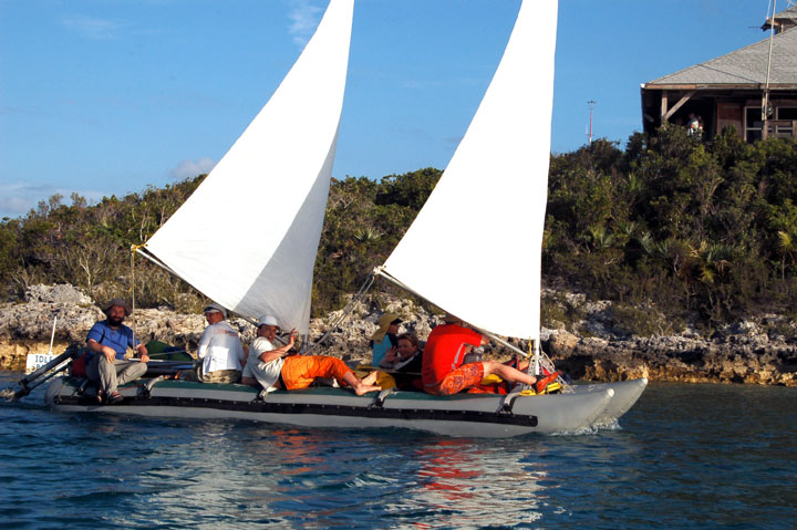 Sailing Inflatable Rafts Here are some of the amazing folks we met at Exuma Park on March 14. I had seen them sail past us while we were at anchor just north of Pipe Creek, and they arrived at Warderick Wells not long after we did that afternoon. This was clearly the kind of adventure they would remember and talk about for a long, long time.